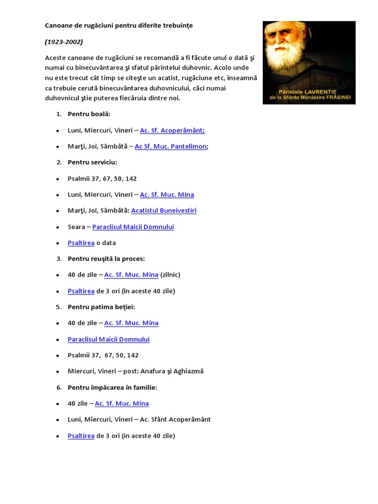 Canoane De Rugaciuni Pentru Diferite Trebuinte