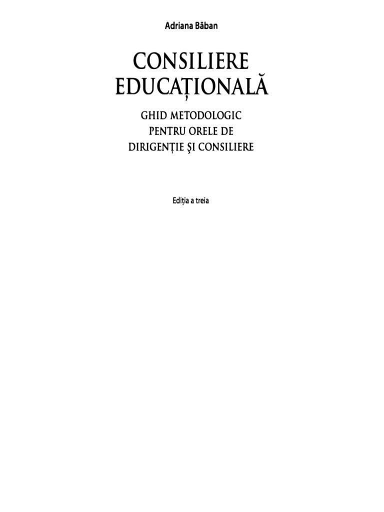 Consiliere Educaţională Ghid Metodologic Pentru Orele De Dirigenţie Si Consiliere Adriana Băban Cartepedia Ro
