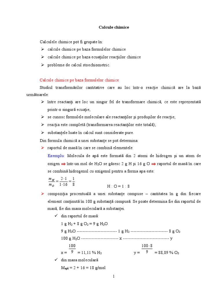 1 Alcule Pe Baza Formulelor Si Ecuaţiilor Chimice Exemplu
