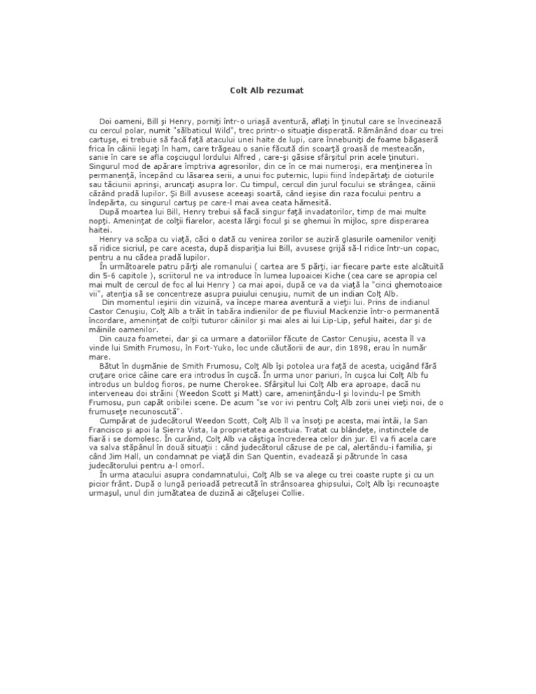 Colt Alb Rezumat Pe Scurt