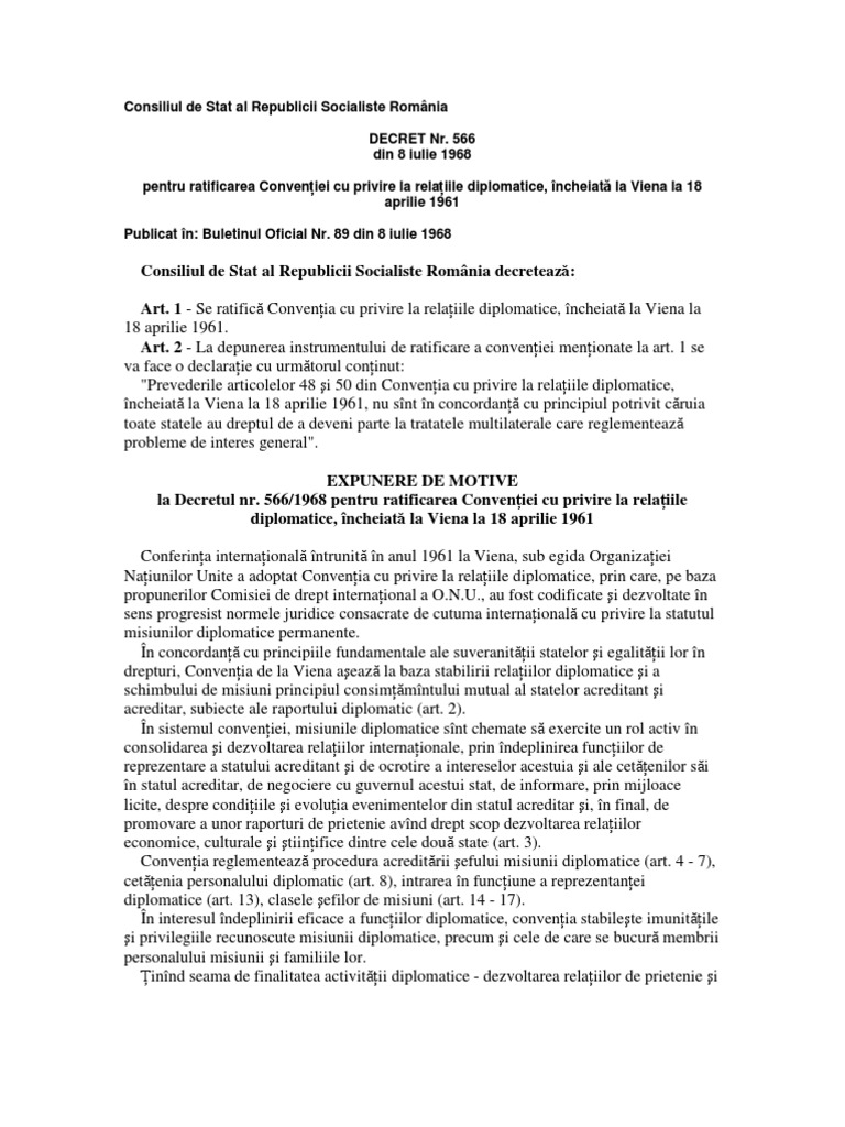 Conventie Viena Relatii Diplomatice 1961
