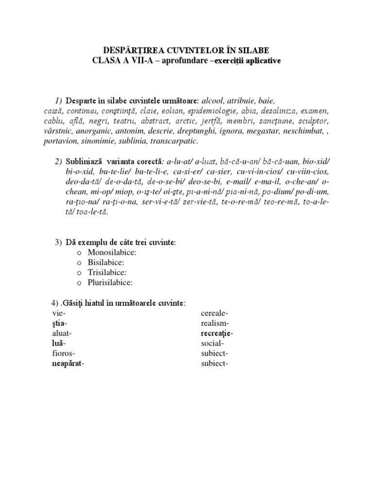 Gramatică Despărțirea Cuvintelor In Silabe Materiale Didactice