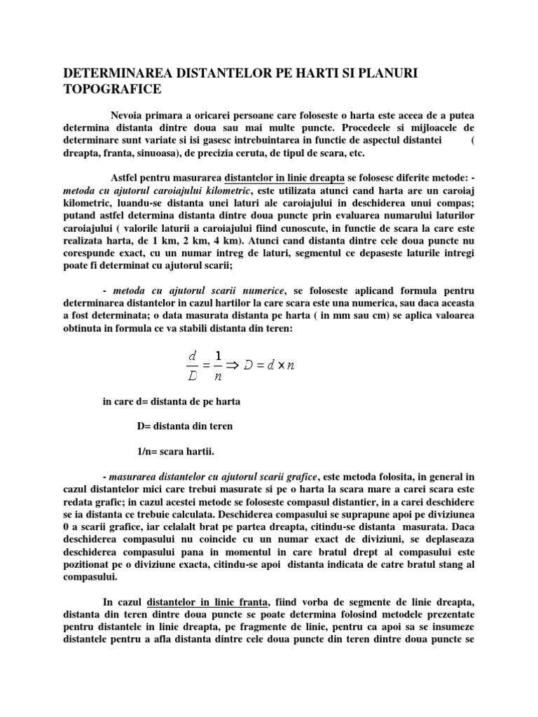 Determinarea Distantelor Pe Harti Si Planuri Topografice