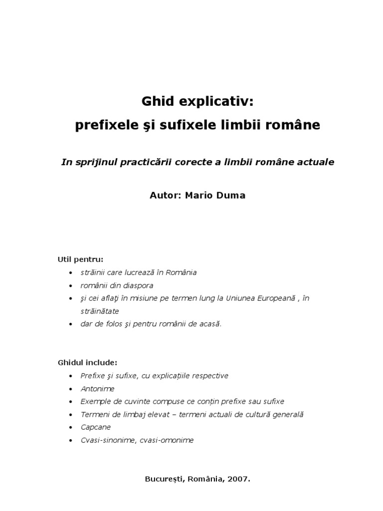 Sufixarea In Limba Romană Lecţia De Dicţie