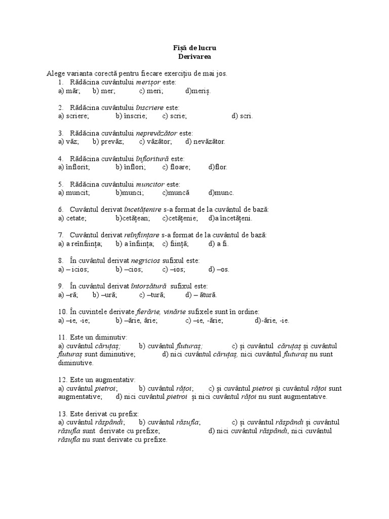 1 Cuvinte Derivate Fișă De Lucru Maria