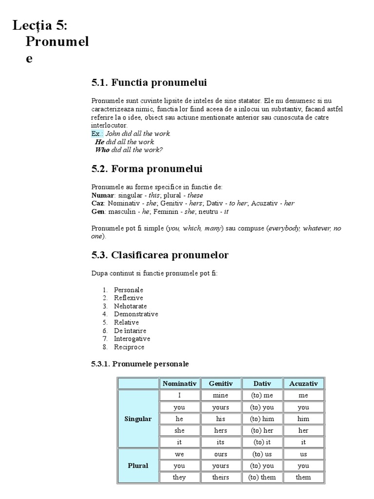 Pronumele Gramatica Engleza Syntax Linguistic Morphology