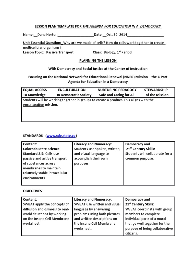 Passive Transport Lesson Cell Membrane Educational Psychology