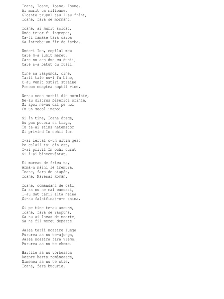 Ioane Ioane Ai Murit Ca Milioane