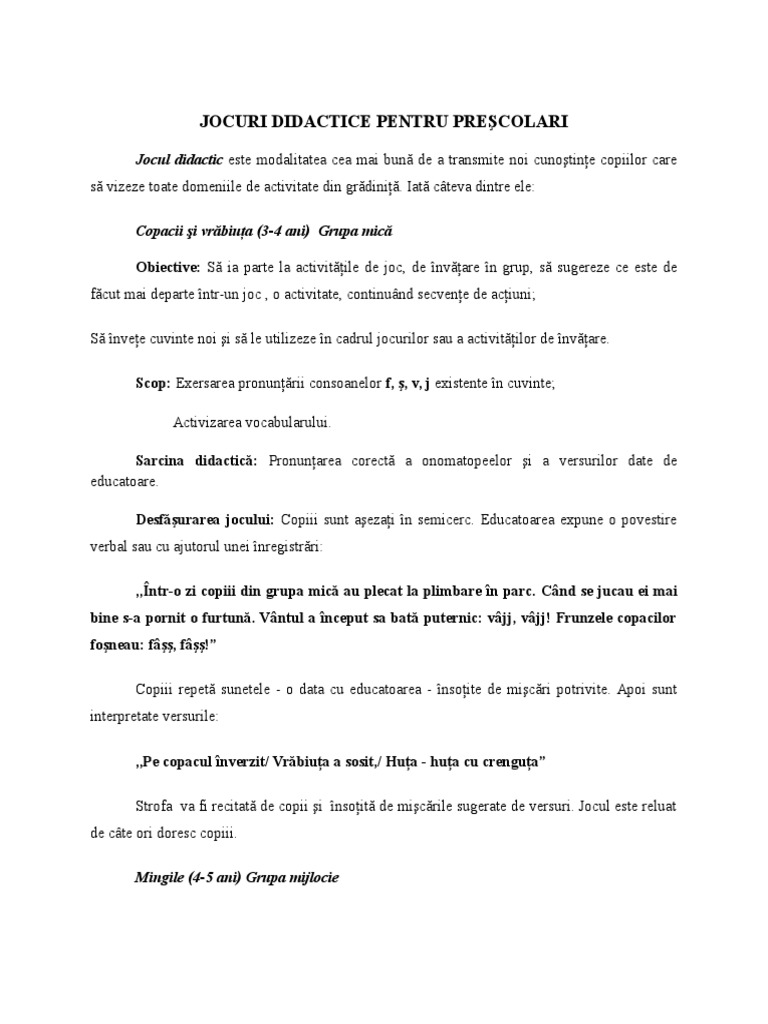 Referat Jocul Didactic Punte De Legatura Intre Gradinita Si Scoala Pedagogie 5269
