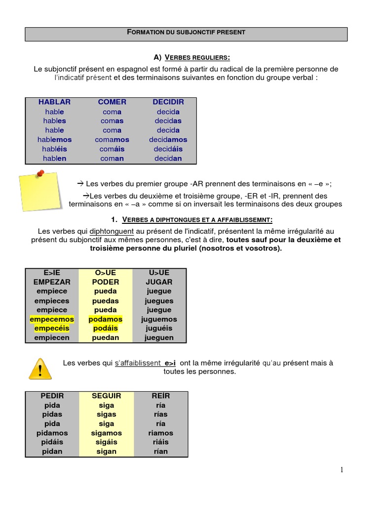 Present De L Indicatif L Espagnol Au Baccalaureat