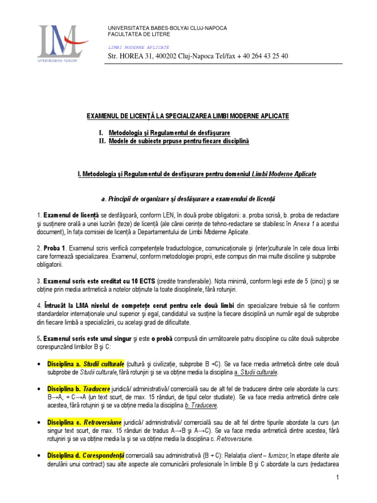 Limbi Moderne Aplicate A Facultăţii De Limbi Străine Cluj