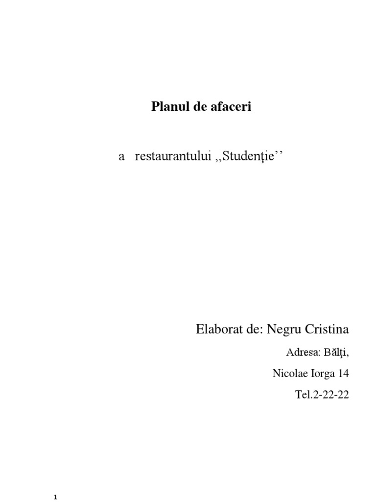 Model Plan De Afaceri Pentru Infiintarea Unui Restaurant Plandeafacere Ro