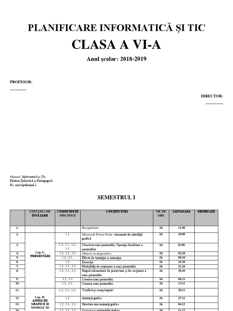 Planificare Tic Clasa A Vi A