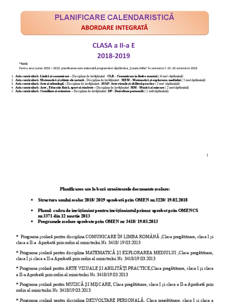 Planificare Calendaristica Integrata Cls A Ii A De Postat