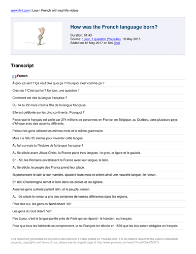 How Was The French Language Born French Video Transcript Translation Worksheets Teaching Resources
