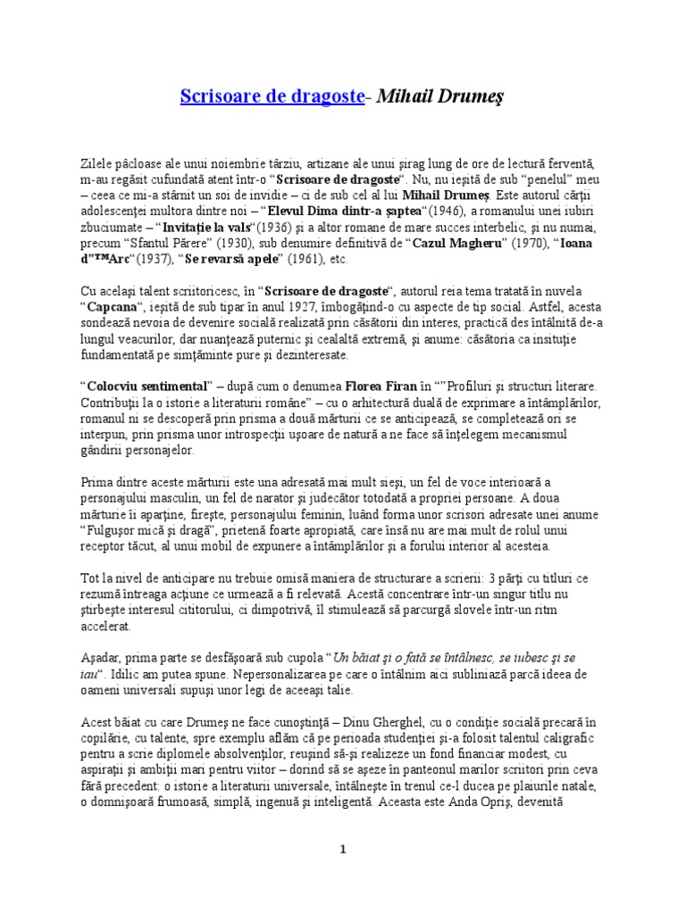 Rezumat Scrisoare De Dragoste Mihail Drumes