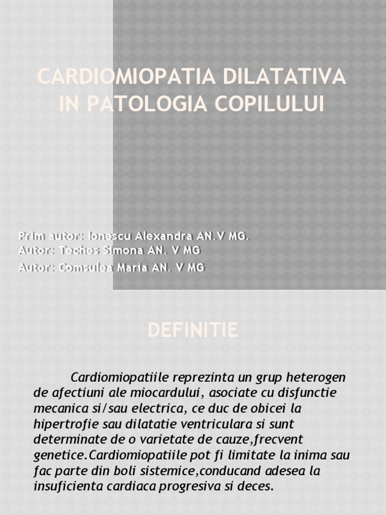 Cardiomiopatia Dilatativa In Patologia Copilului