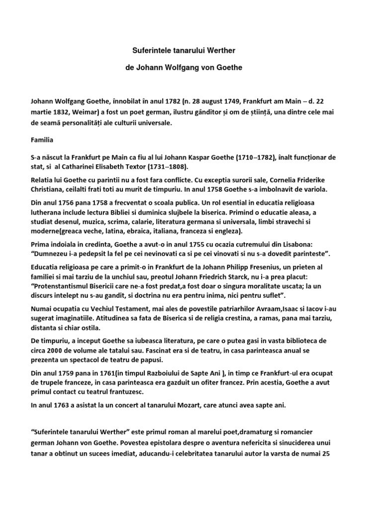 Suferintele Tanarului Werther Johann Wolfgang Von Goethe Pdf Carte Pdf Citești Instant