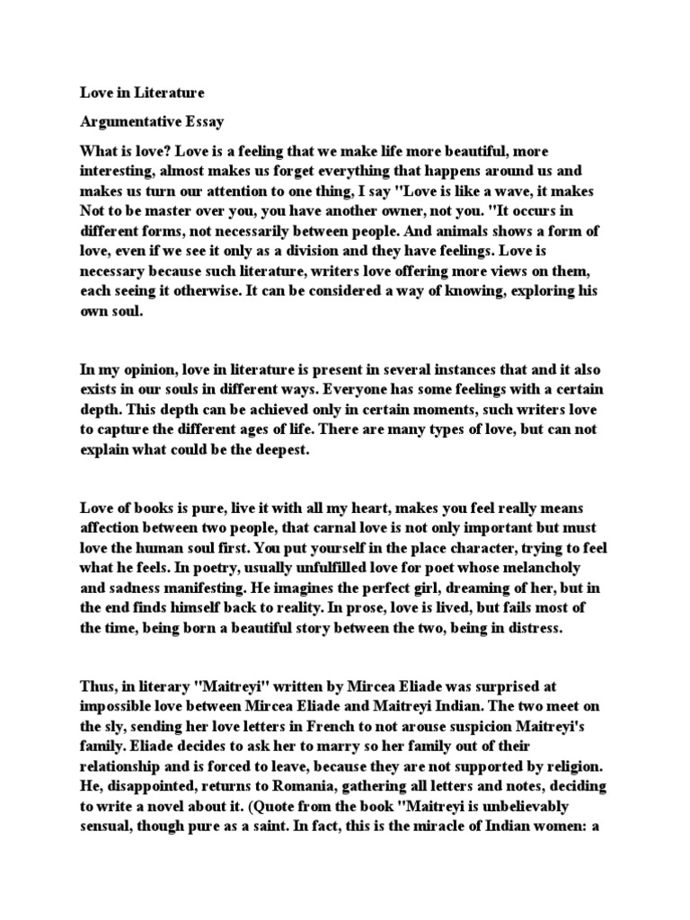 Eseu Argumentativ Iubire Fata De Literatura In Engleza Love Adolescence