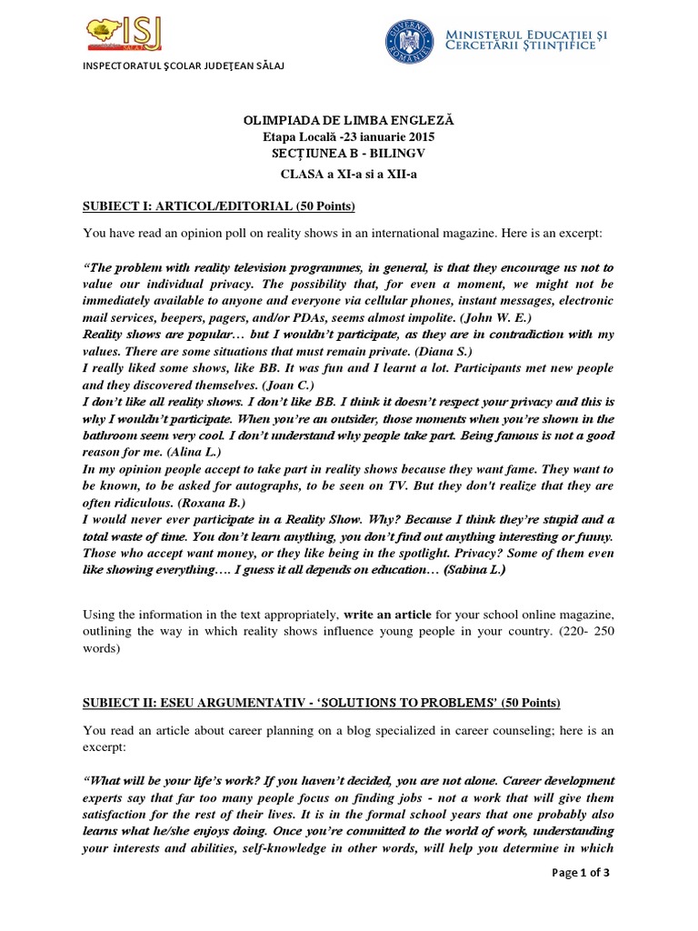 Olimpiada Lb Engleza Judet 2011 Pdf Inspectoratul Azcolar
